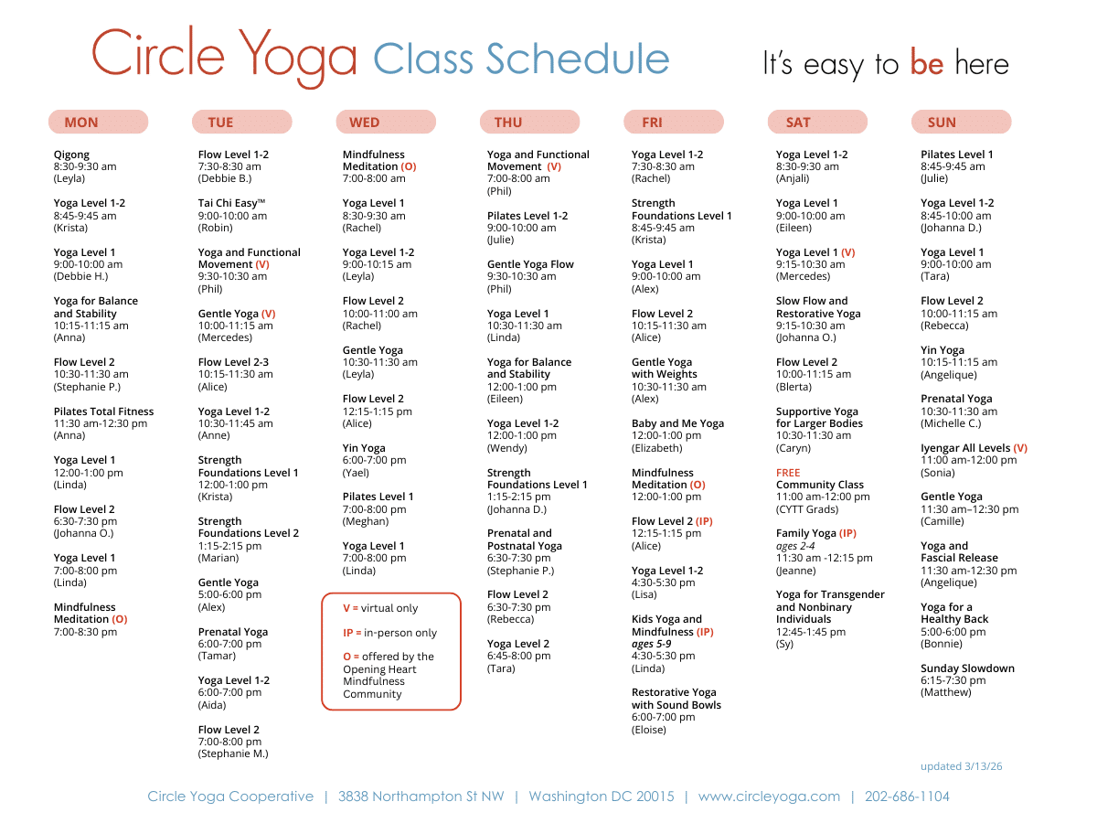 Circle Yoga Cooperative is a warm, welcoming community of students and teachers who come together to practice yoga, mindfulness, Pilates, and other wellness modalities.